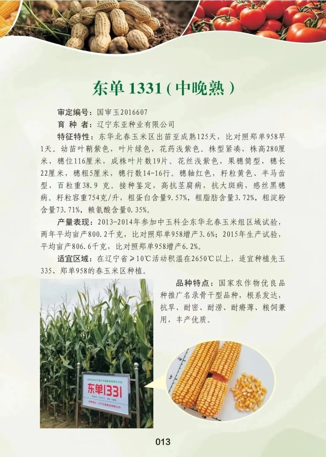该品种连续获得农业农村部多项认可:2022年被列为粮油生产主导品种,2023年入选国家农作物优良品种推广目录中的成长型玉米品种,2024年再度获评农业主导玉米品种,2025年进一步提升为国家农作物(玉米)骨干型品种。同时,自2023年以来,东单1331已连续三年荣获辽宁省农作物优良品种称号。