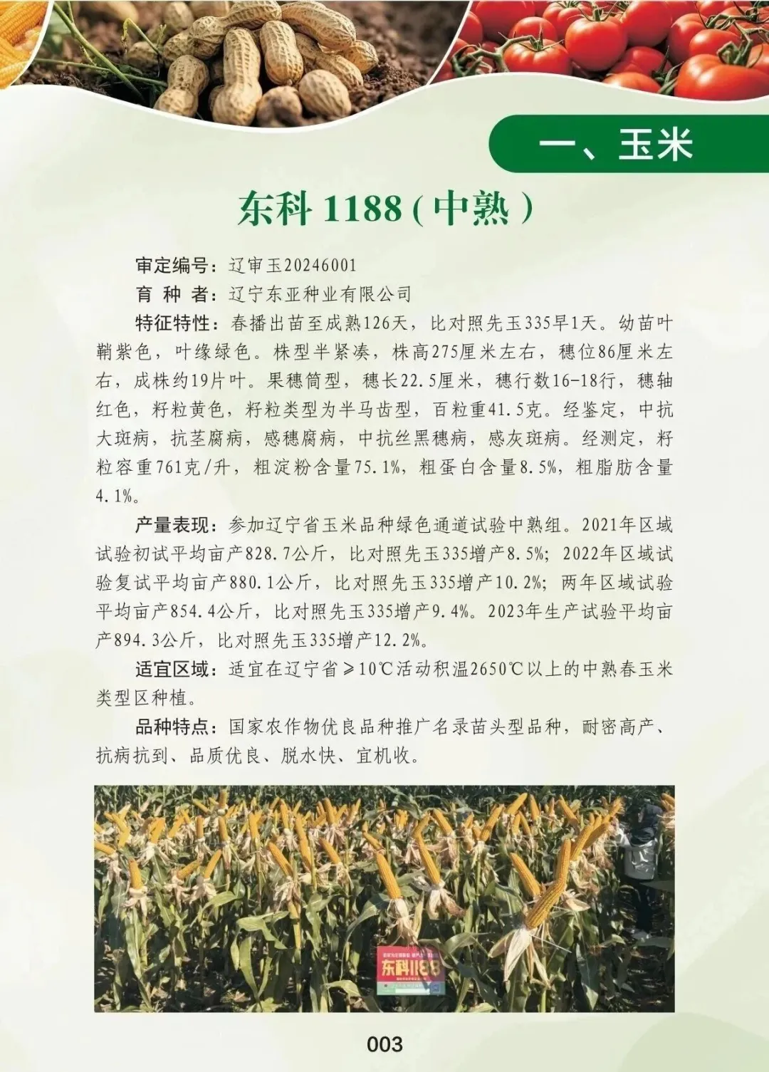 东科1188是辽宁东亚种业有限公司自主研发的玉米品种,已入选2025年国家农作物(玉米)苗头型品种!